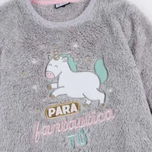 Pijama de tejido calentito grueso, de manga larga, cuello redondo y pantalón largo.