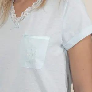 Pijama de Navidad punto de algodón suave al tacto, de manga larga, cuello pico y pantalón largo.
