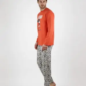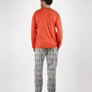 Pijama de punto de algodón suave al tacto, de manga larga, cuello redondo y pantalón largo.